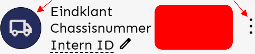 - Enkel de Asset manager kan de Asset naam, Eindklant en het Chassisnummer invullen/bewerken door op het potlood te klikken of de Asset verwijderen door op de prullenbak te klikken.