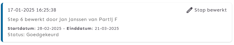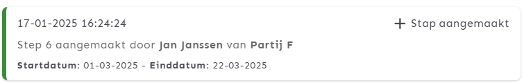 - De start- en einddatum van de stap