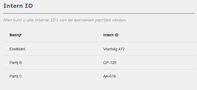 - Het Intern ID kan hier door iedere partij voor zichzelf worden ingevuld.