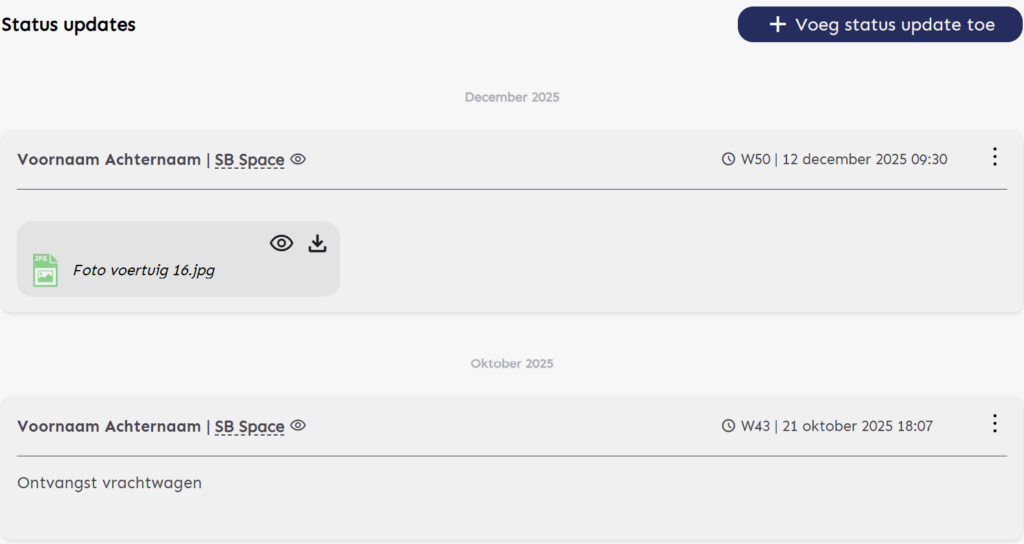 Hier kun je tekstuele updates, documenten en foto’s delen met alle betrokken partijen.