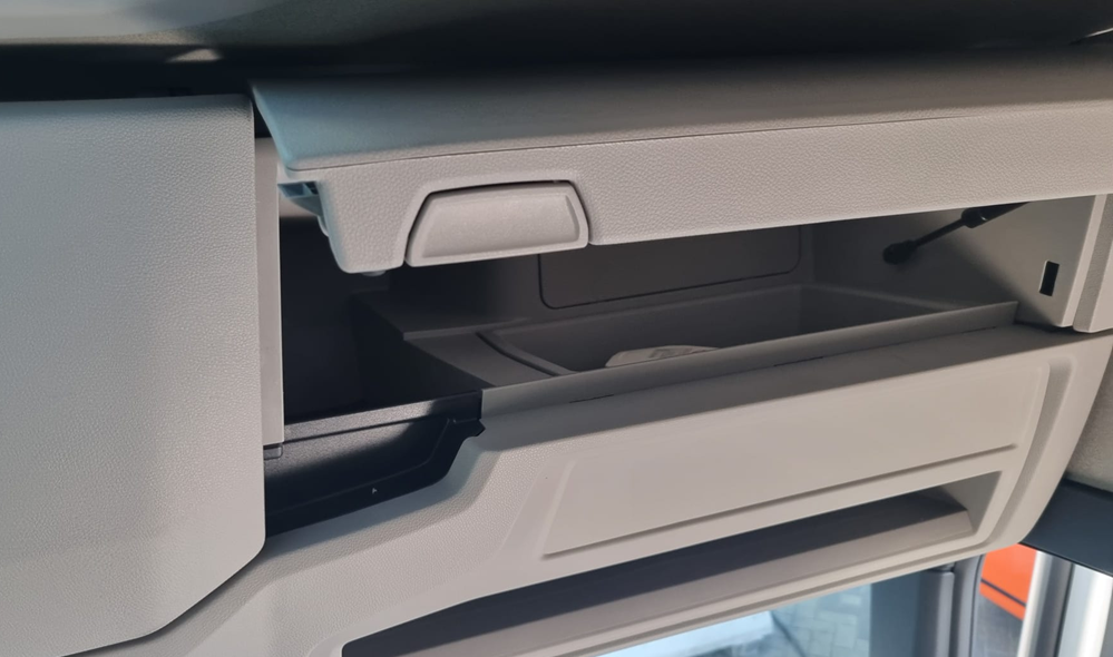 - De GPS-tracker mag geplaatst worden in het rechtse bovenkastje (opbergvak boven de voorruit). Dit is tijdens de opbouwfase de enige locatie die bijna geen enkele fabrikant nodig heeft voor de inbouw. De tracker ligt hier bovendien stevig en blijft goed op zijn plaats.