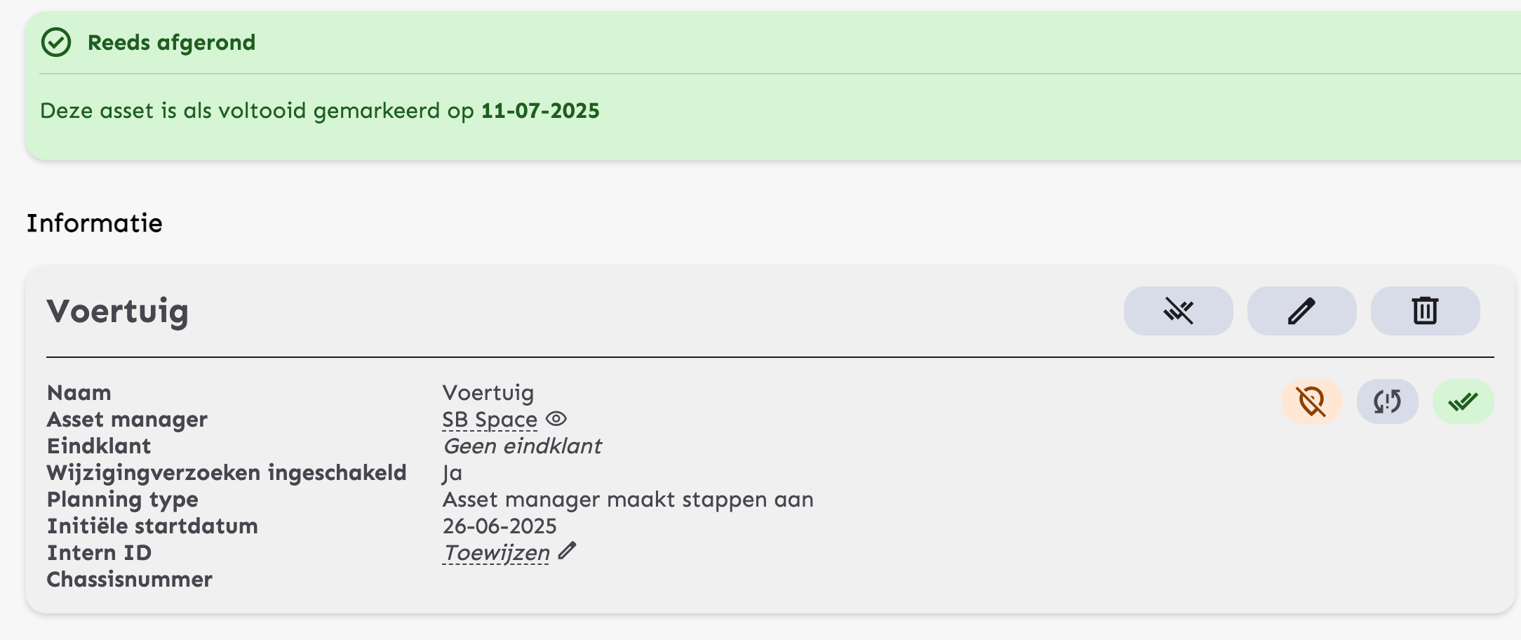 Markeer assets eenvoudig als voltooid. Deze verdwijnen automatisch uit je actieve planning, waardoor je beter overzicht houdt.